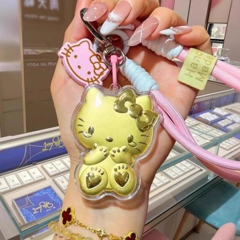 HelloKitty Keychain 999KT Pingente de Ouro Puro, Corrente do telefone móvel, Pacote Top Ranking, Decoração do carro